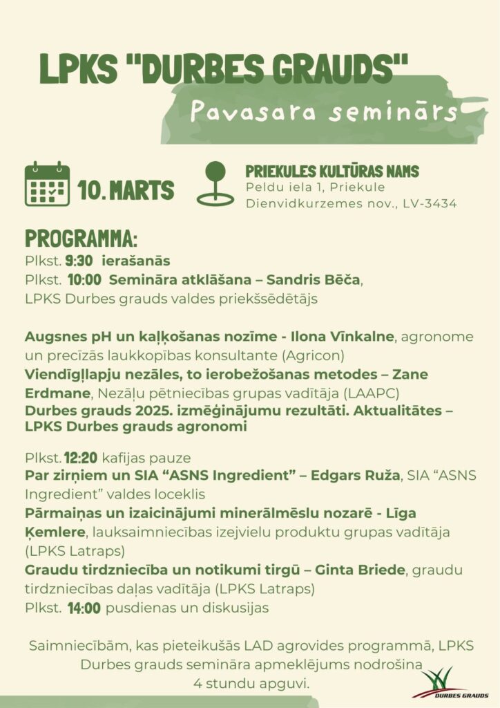 Aicinām apmeklēt pavasara semināru 10.martā Priekulē, Priekules kultūras namā. Lūdzam iepriekš reģistrēties, nospiežot šeit!