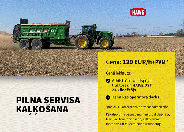 Vai vēlaties veikt efektīvu un ērtu augsnes kaļķošanu bez liekām investīcijām tehnikā? LATRAPS Tehnika piedāvā jaunu pakalpojumu – pilna servisa kaļķošanu ar augstas klases aprīkojumu HAWE DST 24 kliedētāju un pieredzējušu tehnikas operatoru.